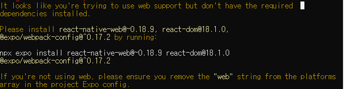 react-native-web과 react-dom을 설치하라고 함!
