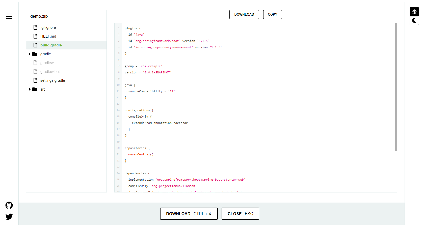 해당 dependencies를 사용하기 위해서 spring에서 지원하는 gradle 파일에 넣을 코드를 복사할 수 있는 곳이 있습니다.